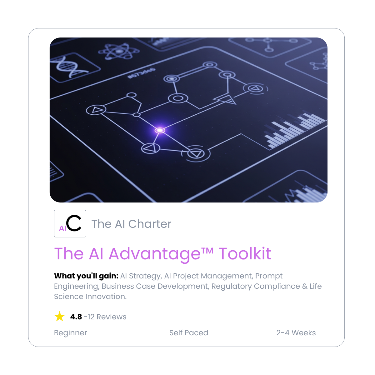 • The Capstone Project Apply your skills to design and strategize a scalable GenAI solution for a real-world pharmaceutical problem.